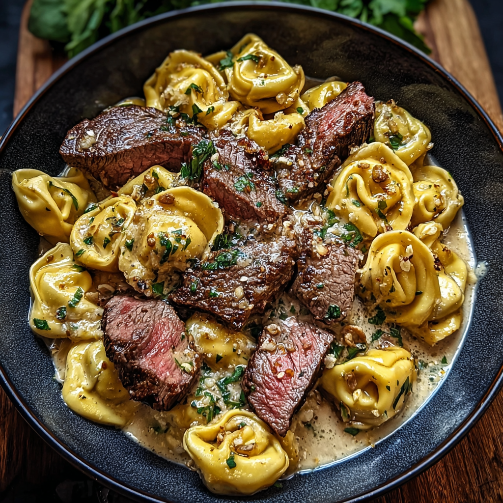 Tortellini Steak Slices with Crushed Garlic