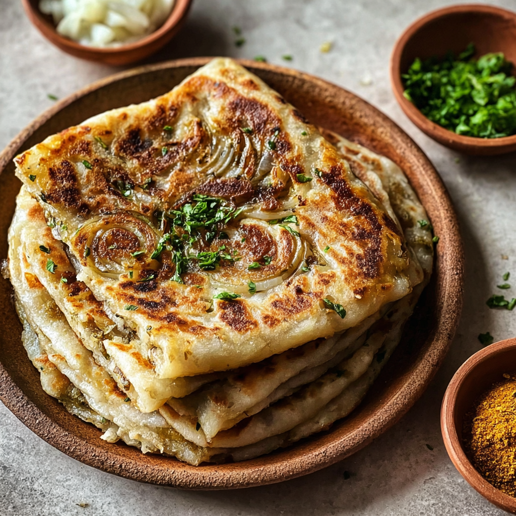 Moroccan Msemen Stuffed with Onions and Herbs