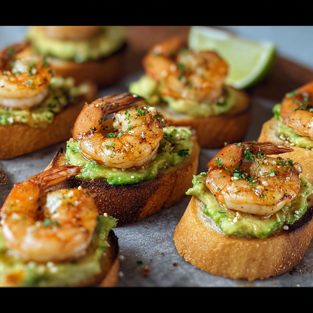 Shrimp Crostini with Garlic and Avocado